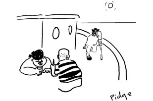‘What are you going to put on my head to protect me?’ said the man outside the barber’s shop to the bemused looking barber.