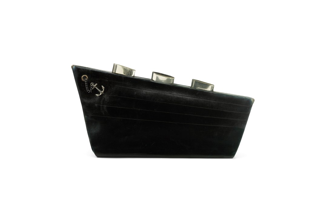 Luxury handbags now outperform even art as a financial investment, and the bag as wearable art is explored in the exhibition in everything from ‘reticules’ — 19th-century fabric handbags with a flat surface for decoration — to an insect-studded Prada ‘Entomology’ bag designed by Damien Hirst. There are also playful fashion creations, such as Karl Lagerfeld’s ‘Lait de Coco’ bag in the shape of a milk carton and Thom Browne’s ‘Hector’ handbag, a lifesize replica of his dachshund with handles on its back. Savi says that handbags offer an opportunity for experimentation among designers because there are no rules: ‘We don’t have to fit any body part into a handbag, not like a hat, or shoes.’