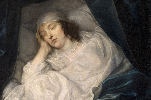 From the moment he discovered her dead body, seemingly asleep in her bed, his behaviour was, to say the least, a little odd. He took plaster casts of her hands, feet and face. He had Van Dyke paint a portrait of her in death. He commissioned a phalanx of poets, led by Ben Jonson (who was summoned to the deathbed so that he would be inspired by the sight), to write poems in her praise. He insisted on attending the dissection which sought to find the cause of her death, and discovered that her brain had turned to mush. He built a vast, black mausoleum for her body: it was surmounted by a golden bust. He abandoned his career at court. He never married again, not even to provide a stepmother for his infant children. This is the man in the portrait.
