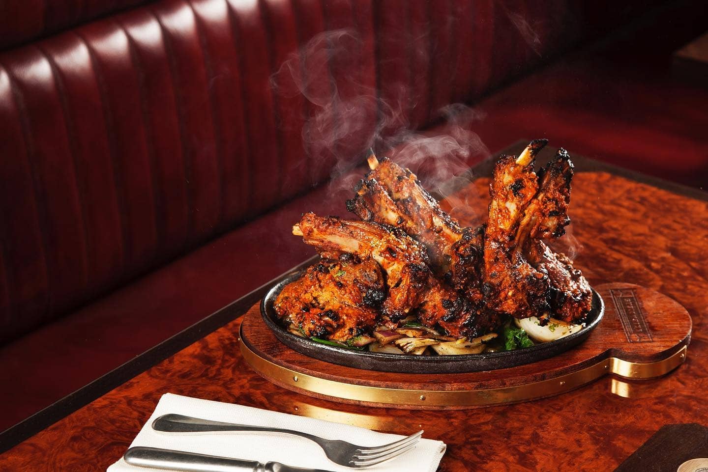 There is a notable, confident, use too of old colonial themes, at the JKS restaurants and beyond. From the names – Mayfair’s Gymkhana is a reference to the elite Raj-era Anglo-Indian sports clubs; to the interior furnishings –Jamavar models itself on the old Viceroy’s house in Delhi and Bombay Bustle’s seating booths are modelled on colonial-era Indian railway carriages. But the authentic Indian flavours of the food have never been compromised or toned down: as Karam says to me, ‘We’ve never looked to reinvent or change those flavours to suit European palates, but rather to faithfully translate them so a new audience can enjoy them as much as we always have done.’