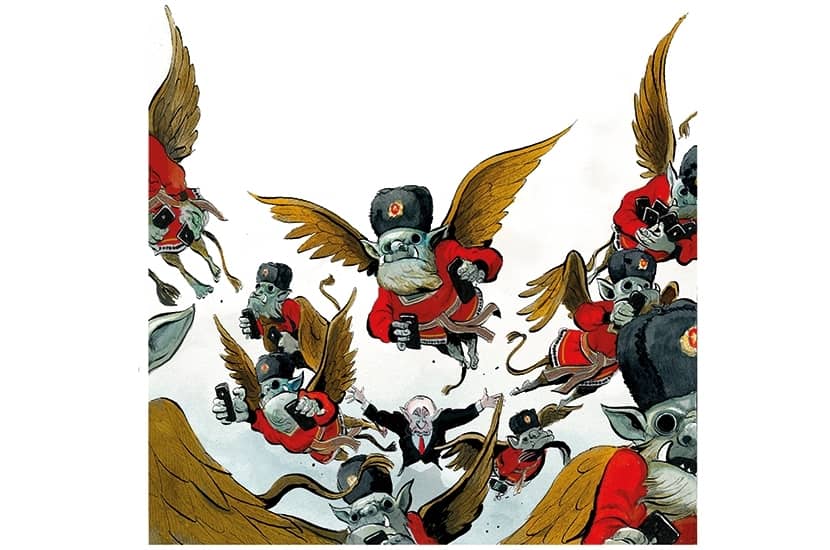 Boy, was I wrong. Instead, what proved a relatively mild disease, in the big, smallpoxian picture, fostered an even greater frenzy of ineffectual pettiness – park benches wrapped with police tape, government edicts about Scotch eggs, fisticuffs in supermarkets over thin, gap-prone facial napkins. Rather than reveal the content of the culture wars as meeting the textbook definition of neurosis – being beset by problems of your own invention – the pandemic allowed the same rival teams to reconstitute around a new false dichotomy: who has or hasn’t partaken of a certain medical prophylaxis, when the nostrum made the experimental population no safer company than the control group. Worst of all, virtually the entire western world jettisoned every civil liberty its peoples had ever imagined their birthright, going into throes of unrestrained authoritarianism, police overreach and state micromanagement of everyday life. Last month’s scenes in Ottawa of police arresting truckers at gunpoint for protesting vaccine mandates were ominously of a piece with this week’s scenes in Moscow of Russian police roughly arresting protestors against the war in Ukraine.
