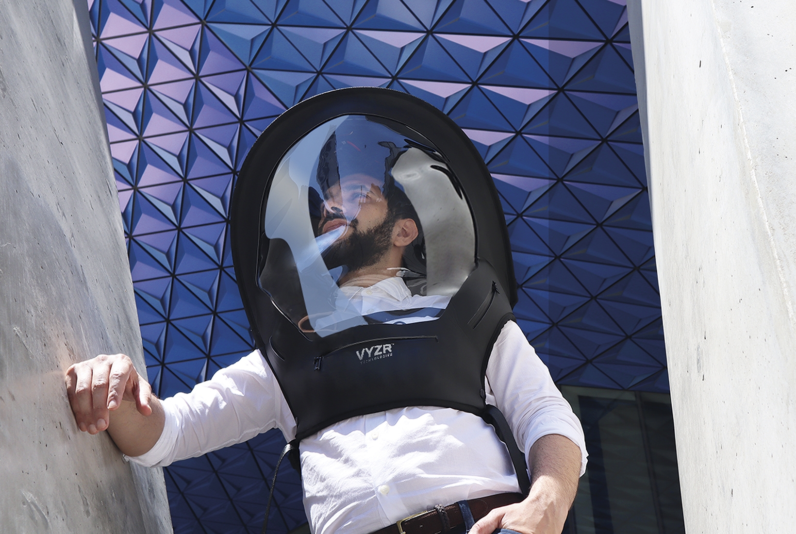 Perhaps the most bizarre and poignant example of blocked-off design I have seen is a pseudo-space helmet that has emerged, under the name, ‘Personal Air Purifying Shield’. A Toronto-based company, VYZR Technologies, is selling this hazmat helmet, which boasts anti-fog windows, hospital-grade air purifiers, and even a cooling fan. It is priced, for a limited time offer at $379, though it is on backorder until November. A banner on the company’s website notes that it is receiving high order volumes and may not be able to respond to enquiries right away. The popularity of this object almost feels like the return of armour; the term ‘shield’ is quite literal if you zip yourself into a personal air purifier. In this case, the armour is worn against an enemy that’s in one sense invisible, a set of viral particles in the air, but that has also become embodied in the other people you might encounter as you move through the world.