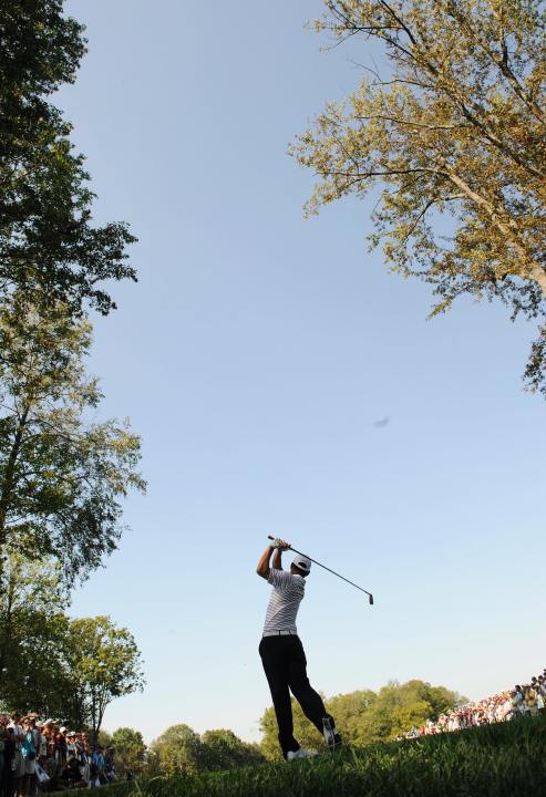Of course, I had to stop the personalised introduction at a rather crucial place for it to have any validity, as after that point the comparison quickly wanes. Whereas the performances at Valhalla will doubtless fuel our self-delusion, the lowly amateur might expect, in decreasing order of embarrassment to a) thunk out a large divot in front of the tee, b) shank the ball wildly into some bush, or at best c) make delectable contact only to lose the ball in grey sheet clouds “Did anyone see where mine went?”.