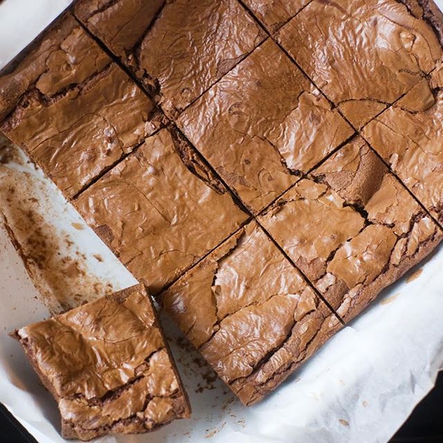 Courtesy of a smart cookie called Aurelia Lambrechts, this method takes a small amount of milk chocolate, chops it finely, sprinkles it over the uncooked brownie batter, and blasts it with a hairdryer. It’s to do with the soy lecithin and milk solids in the milk chocolate, and it ensures that – no matter how you like your brownie – you end up with a perfect glossy, shiny, taut top. You can use this method with any brownie recipe you like – just add the milk chocolate at the end and take aim with your hairdryer.