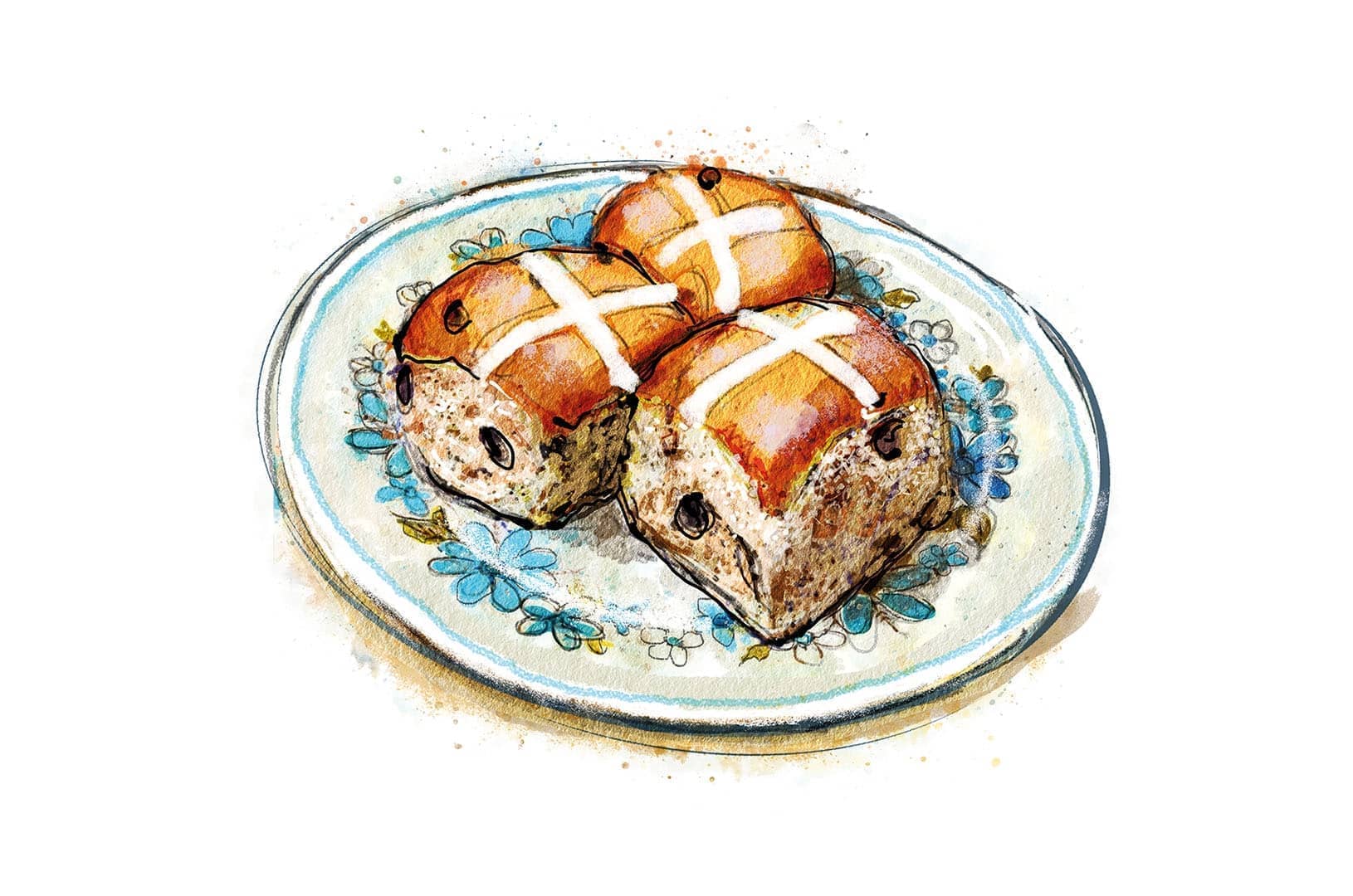 In the 14th century, Brother Thomas Rocliffe, a monk from St Albans, distributed a crossed bun to the local poor on Good Friday. This Alban bun contained currants and cardamom, and the cross was cut into it rather than piped. Rocliffe’s bun is considered the precursor to the hot cross bun. Later, during the reign of Queen Elizabeth I, the sale of spiced buns was prohibited other than on Good Friday, Christmas and at burials. So, slowly, spiced buns became associated with Good Friday. But it wasn’t until 1773 in Poor Robin’s Almanack that the first reference to ‘hot cross buns’ – one a penny, two a penny – was made, and the pastry crosses on top, said to symbolise the crucifixion, became a defining feature.