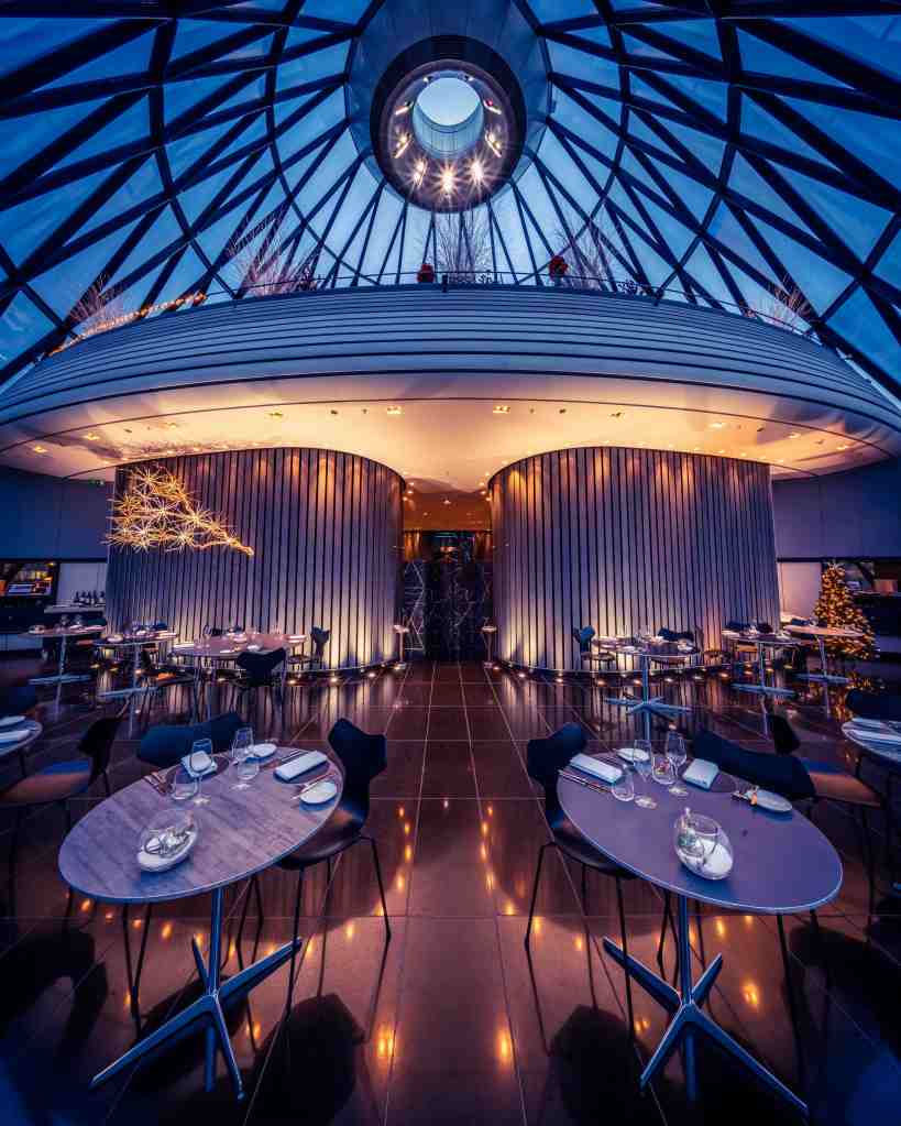 - There is only one curved piece of glass in the Gherkin – all the others are completely flat, the building’s famous shape achieved by the angles at which the panes are joined. The curved one is the horizontal one right at the top – if you want to see it up close and personal, book yourself a table at Searcys at the Gherkin, the restaurant and bar at the building’s summit. Having viewed the curved pane, look out of the flat ones for some incredible views of the capital. gherkinreception@searcys.co.uk