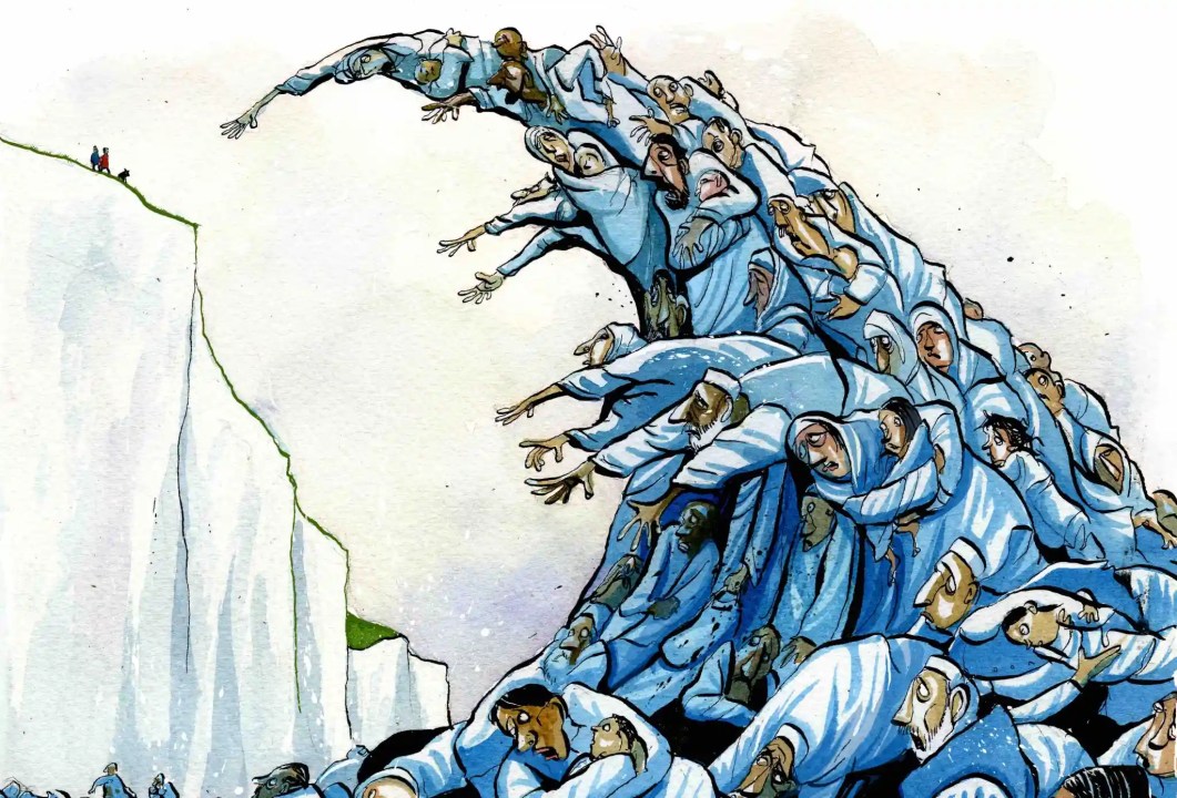 For once, the man from Brussels is right. Those climbing onto these boats will have seen the news, and know the risks. Yet they still take their families on board the inflatable boats, the airtight ship containers, the refrigerated cargo lorries. They are part of a worldwide exodus of which, whatever Nigel Farage and the Daily Mail tell us (‘Asylum: you’re right to worry’ is a typical headline), those coming to Britain are only a tiny proportion. The UNHCR, the UN’s refugee agency, says last year was the worst for refugee crises on record, reaching levels not seen since the Rwandan genocide 20 years ago. The population of forcibly displaced people is now 51 million, twice the entire population of Afghanistan. Yet no one fights for them.