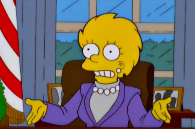 As so often, The Simpsons were years in advance of actual political facts. In the programme about ten years ago, Lisa Simpson, for reasons I have now forgotten, becomes President of the United States. She sits in the Oval Office and is briefed by aides on the mess she has inherited from one President Trump. Trump made the great mistake, she is informed, of ‘investing in our nation’s children’. The country is bust and ‘Our free breakfast program merely created a generation of super-criminals.’