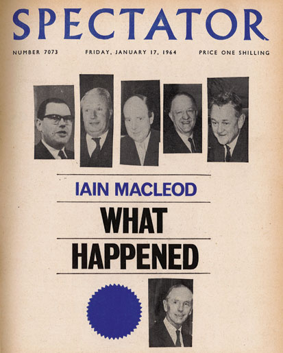[/audioplayer]Fifty years ago this week, a cover story in The Spectator helped to bring down a Conservative government. It was called ‘The Tory Leadership’ and was written by the editor, Iain Macleod, who had been a senior minister in Harold Macmillan’s government. Purporting to be the review of a book by Randolph Churchill on how Lord Home had ‘emerged’ in October 1963 as Macmillan’s successor, it claimed that Macmillan had fixed the succession so as to scupper the chances of the natural candidate, R.A. Butler, who had been deputy prime minister in all but name.