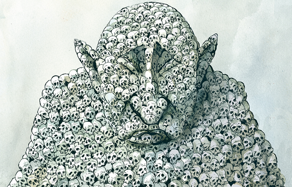 The Russian soldier lay where he had fallen. His plastic combat belt and flak jacket were still intact, but his legs were splayed at an unnatural angle, and where his face and scalp had once been there was now only a skull with dark stains on it.