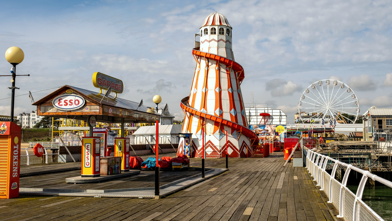I assure you, however, that the appeal of Clacton Pier has just begun. As well as Jurassic Pier (an ‘immersive dinosaur walkthrough and 4D experience’ which left by my four-year-old terrified out of his skin) there’s the fairground. Leave the pavilion and there it is: a rickety looking rollercoaster overlooking sea, and a socking great go-karting ring arranged over two levels. What wonders. There’s also a waltzer, of course, one with a jazzy paint job reminiscent of Top of the Pops c. 1985, as well as a plausible looking log-flume and a vertical ride decorated with pictures of bikini-clad ravers designed (I think) to give you whiplash. Even discounting for sad-looking ‘bumper boats’ stand in the corner – think chlorinated dodgems with outboards – this is an impressive line-up. And there’s a bloody great ferris wheel, too, of course.
