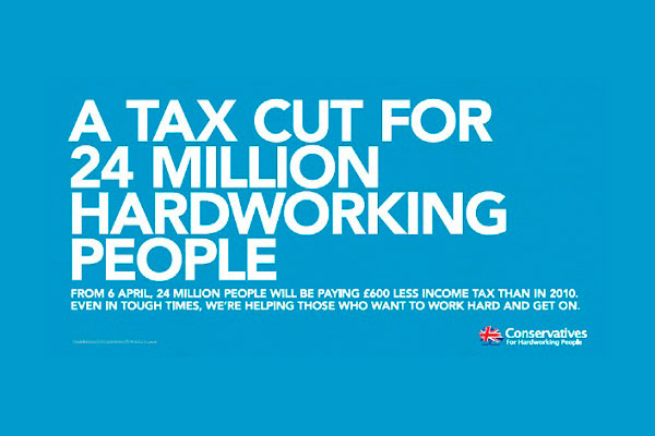 This poster will, I am sure, have the Lib Dems hopping about with fury. The Tories have hi-jacked a key Liberal Democrat policy: raising the personal allowance. Perhaps this is what lies in wait for the Lib Dems as 2015 approaches: the Tories steal all of their good ideas. If that happens, perhaps a merger of the two parties (or at least elements of the Lib Dems) will become more likely. Who knows?