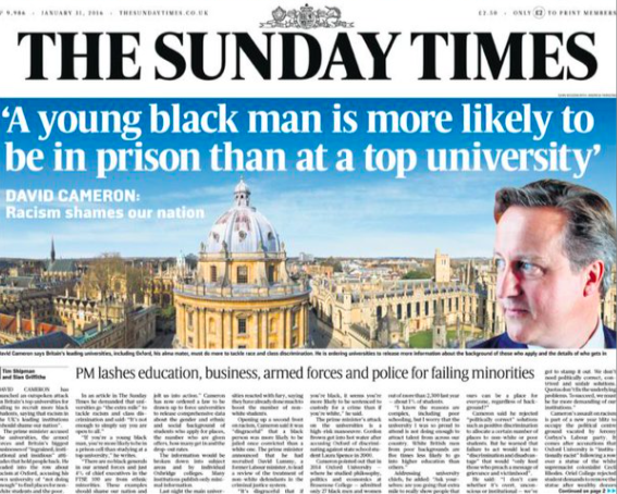 So Cameron owes universities – and black teenagers – an apology. It’s tough enough for teachers trying to raise aspirations in the classroom without the Prime Minister making baseless claims about their chances of success. And, worse, doing so for party political gain. Cameron gets most things right, but he got this badly wrong. In his position, words do have consequences. There’s plenty wrong in our university sector (as I write in my Daily Telegraph column today) but it’s a stretch to say that racial discrimination is a feature of the UK system.