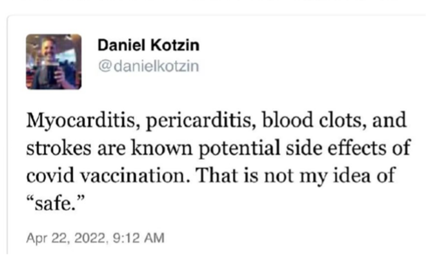 These are well-established facts: myocarditis, pericarditis, blood clots and strokes are known potential side effects of Covid vaccination. And then he stated an opinion: “That is not my idea of ‘safe’.” Facts cannot be misinformation. Opinions cannot be misinformation. So why was he kicked off? And did the government order it?