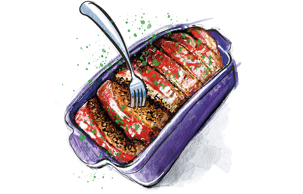 My meatloaf keeps it simple: a mixture of ground beef and pork, with milk-soaked breadcrumbs, grated onion and a little Worcestershire sauce and parsley. The glaze varies too, according to taste and tradition: sometimes an onion gravy is poured on top, others use a tin of cream of mushroom soup. Some top the loaf with streaky bacon, or even ‘frost’ it with mashed potato. But I’ve gone for the classic – sometimes referred to as ‘meatloaf sauce’ – ketchup with a little brown sugar and a splash of vinegar.
