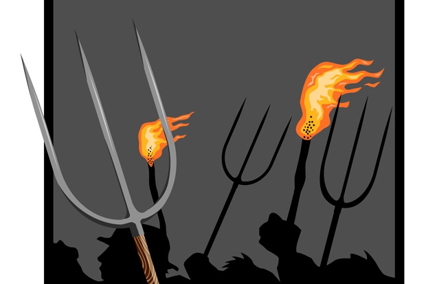 In a way the headline to my fellow columnist Dominic Lawson’s Sunday Times commentary on 12 April said it all. ‘Join the pitchfork wavers on tax, Mr Cameron, and you end up skewered.’ The column had something of an 18th-century ring to it, conjuring in my mind’s eye an elegant London dinner party, with men-about-town in powdered wigs twitching back the heavy damask curtains to sneak worried glances at a riot outside: an unruly and enraged mob rampaging up the street.