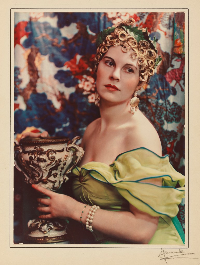 When colour photography first came in at the start of the last century, it met a surprising amount of resistance from distinguished photographers. But Madame Yevonde loved it, owned it, revelled in it. She invested in a new Vivex repeating back camera, exhorting her fellows at the Royal Photographic Society in 1932: ‘Hurrah, we are in for exciting times. Red hair, uniforms, exquisite complexions and coloured fingernails come into their own… If we are going to have colour photographs, for heaven’s sake let’s have a riot of colour.’