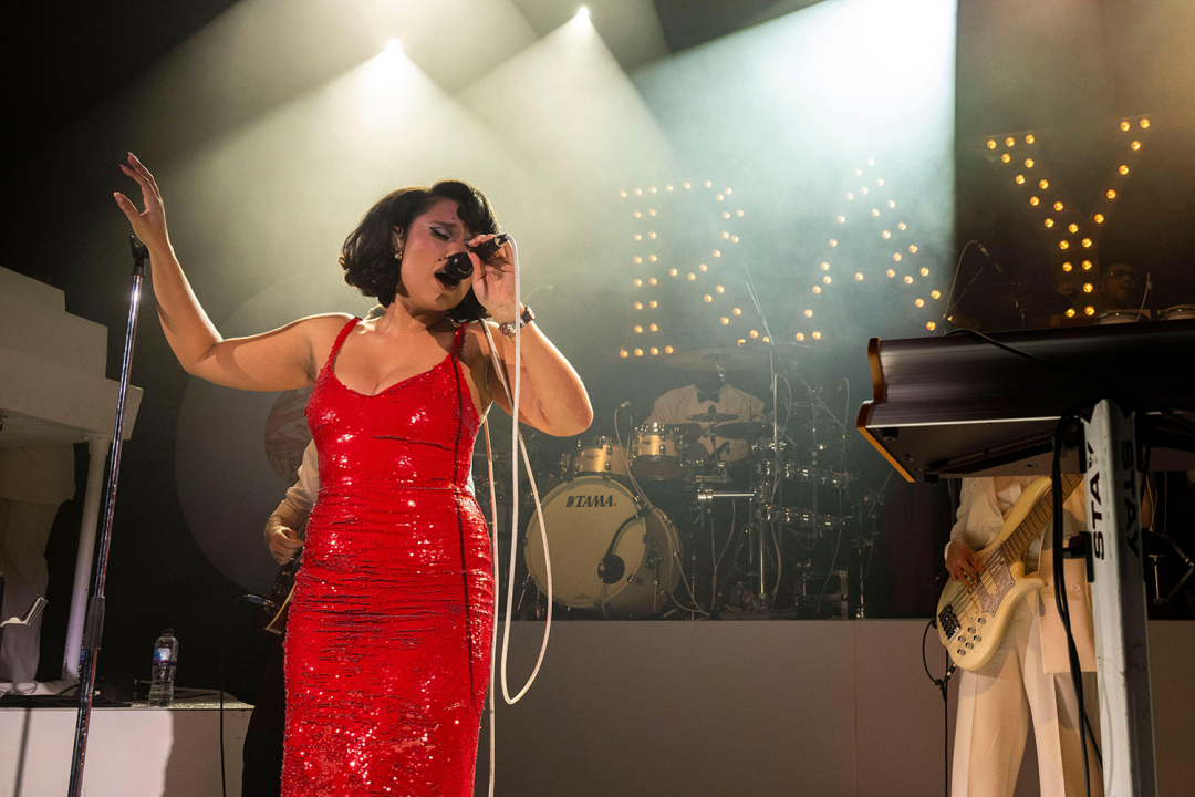 At the Empire, she certainly boosted the retro side of things – the stage was dressed like an old swing-era nightclub, all in white, with a four-piece horn section, and the band in bow ties. Raye herself was in a plunging red gown, which perhaps afforded the top balcony a view she had not anticipated. The band sounded fantastic – lithe, sinuous and responsive – and Raye’s voice is top notch.