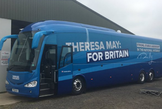 1/2 Theresa May's presidential campaign coach. Very smart. Registration number YT12 RLV. Hold on, that rings a bell! pic.twitter.com/xXlGVPxuCH