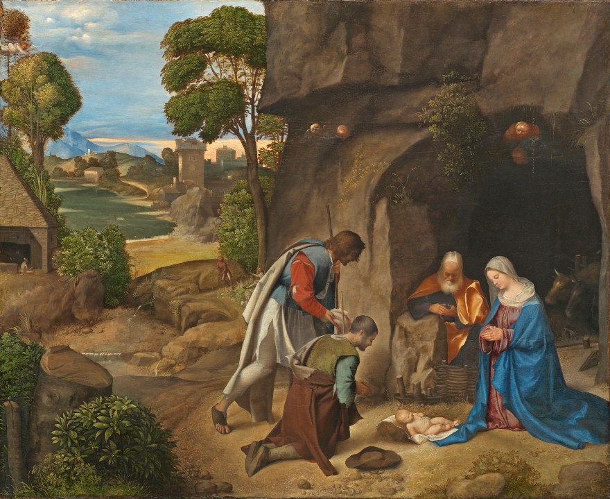 It concerns a beautiful picture, now in the National Gallery of Art, Washington DC, and the artist who may or may not have painted it: Giorgione of Castelfranco — just George, ‘Zorzo’, to Isabella — who had died recently of the plague. This is still sometimes known as the Allendale Nativity because it was once owned by the Allendale family of Bretton Hall, Yorkshire.