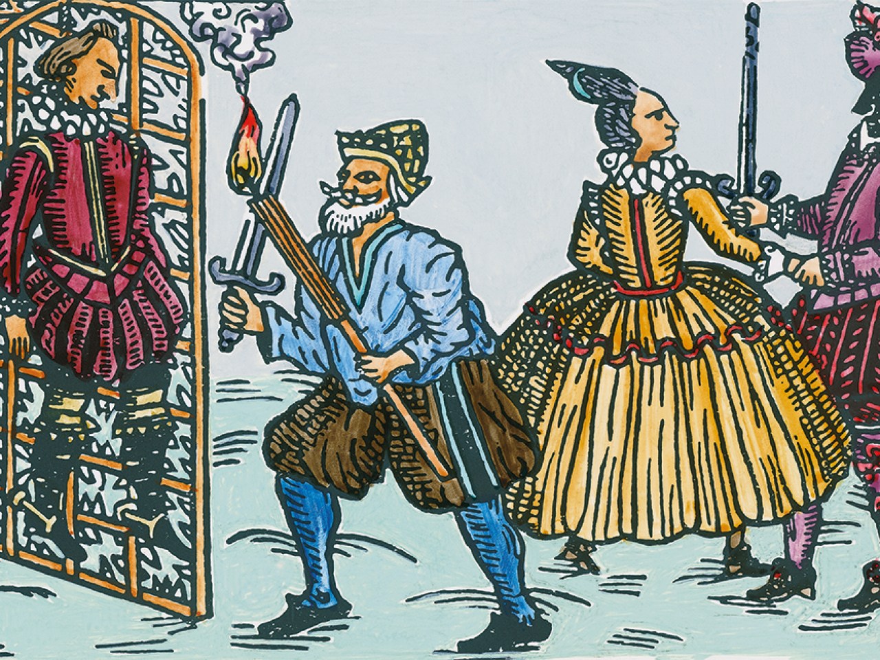 Perhaps he was employed as a secretary by the literary patron Ferdinando Stanley, the Earl of Derby; but Kyd only comes into the historical records when he is implicated in the murky politics swirling around Marlowe in 1593. ‘Vile, heretical’ papers found in their shared bedsit resulted in Kyd’s arrest and torture. He maintained that they belonged to Marlowe, adding that among his ‘monstrous opinions’ were the jesting claims that St John was Christ’s lover and ‘Paul a juggler’. It is a deep irony for this occluded author that the only papers we have in his own son-of-a-scrivener handwriting are Kyd’s strenuous attempt to deny his authorship of these contested and incriminating texts. He did not long survive his imprisonment and died in August 1594, aged just 36.