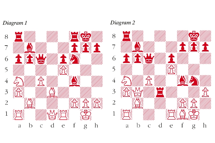 1 d4 d5 2 Nf3 Nf6 3 e3 e6 4 Bd3 c5 5 b3 In this variation, developing the queen’s bishop to b2 has the idea of posting a knight on e5 and launching an attack on the kingside. 5 … Nc6 6 Bb2 Bd6 7 0-0 Qc7 8 a3 b6 9 c4 Bb7 10 Nc3 a6 11 Re1 11 dxc5 bxc5 12 cxd5 exd5 13 Rc1, going after his opponent’s hanging pawns, would have been more energetic. 11 … cxd4 12 exd4 0-0 13 Na4 Bf4 14 Ne5 dxc4 Opening up the a8-hl diagonal for the light-squared bishop. The reply is forced due to the threat of b5. 15 bxc4 Nxe5 16 dxe5 Qc6 (see diagram 1) Suddenly, the danger of a mating attack looms over the white king. White should have forced a transition into an endgame with 17 Qf3. With queens on the board, Black’s attack soon becomes unstoppable. 17 Bf1 Rfd8 18 Qb3 Ng4 19 h3 Rd3! (see diagram 2) The start of a nice combination. Clearly, White can’t capture the rook with his bishop. If 20 Qxd3 then 20 … Bh2+ 21 Kh1 Nxf2+ follows, winning the queen. 20 Qxb6 Rxh3 Shifting the rook to the kingside is the point of this combination. 21 Qxc6 doesn’t work because of 21 … Bh2+ 22 Kh1 Nxf2 mate. White attempts to protect f2, fending off the mating threats; however, a windmill tactic proves to be the White queen’s downfall. 21 Bd4 Bh2+ 22 Kh1 Bxe5+ White resigns If 23 Kg1, then 23 … Bh2+ 24 Kh1 Bc7+ followed by 25 … Bxb6 is decisive.