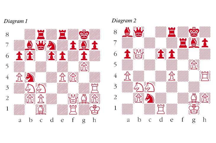 1 e4 c5 2 Nf3 d6 3 d4 cxd4 4 Nxd4 Nf6 5 Nc3 a6 6 Be2 e6 7 0-0 Be7 8 f4 0-0 9 Kh1 Qc7 10 a4 Nc6 11 Be3 Re8 12 Bf3 Rb8 13 Qd2 Bd7 14 Nb3 b6 15 g4 This move signals the start of an assault. Right from the opening Karpov begins a direct attack on the king. 14 … Bc8 16 g5 Nd7 17 Qf2 Bf8 18 Bg2 Bb7 19 Rad1 White completes his development and takes aim at the d6-pawn. 19 … g6 20 Bc1 An interesting idea. The bishop retreat clears the third rank for the rook on d1 to switch to the kingside, which significantly strengthens White’s attacking potential. 20 … Rbc8 21 Rd3 Nb4 22 Rh3 Bg7 (see diagram 1) Black should have decided on 22 … f5. After 23 gxf6 Nxf6 24 f5 exf5 25 exf5 Bg7 the position would have remained very complicated and unclear. 23 Be3 White targets the weak b6-pawn and creates the unpleasant threat of Bd4. However, 23 f5 was very strong. After the forced 23 … exf5 24 exf5 Black would have had to find a defence simultaneously against two threats: 25 Qh4, with a double attack, and 25 fxg6. 23 … Re7 Hurrying to defend f7. 24 Kg1 Rce8 25 Rd1 f5 This activity is practically forced, but from this moment the latent spring of Black’s position gradually begins to uncoil. 26 gxf6 Nxf6 27 Rg3 Karpov hardly calculated the variations with 27 Bxb6, fearing 27 … Ng4 but after 28 Bxc7 Nxf2 29 Bxd6! Nxdl 30 Bxe7 White has good winning chances. 27 … Rf7 Karpov underestimated the strength of this move: Black succeeds in successfully regrouping his rooks. 28 Bxb6 Qb8 29 Be3 Nh5 30 Rg4 Nf6 31 Rh4 g5 Black’s initiative becomes threatening, although the resulting irrational positions involve great risk for both sides. 32 fxg5 Ng4 33 Qd2 Nxe3 34 Qxe3 Nxc2 35 Qb6 Ba8 (see diagram 2) 36 Rxd6 A blunder, which effectively loses the game. It was essential to play 36 Qxb8 Rxb8 37 Bh3! with wild complications. 36 … Rb7 Until now this rook has moved only in small steps, uncharacteristic of such a powerful piece (… Rf8-e8-e7-f7), but its first ‘long’ active move proves decisive. 37 Qxa6 Rxb3 38 Rxe6 Rxb2 This throws away the win, and even jeopardises the required draw. 38 … Ne3! would have been decisive. 39 Qc4 Kh8 40 e5 Missing 40 g6 h6 41 Rxe8+ Qxe8 42 Nd1. 40 … Qa7+ 41 Kh1 Bxg2+ 42 Kxg2 Nd4+ White resigns