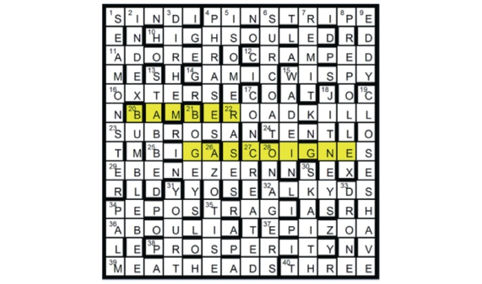 Material from superfluous words in clues gives ‘fingers on buzzers’ (describing 2/20 and 8/33), ‘your starter for ten’ (indicating 31, which is defined by 24) and ‘have to hurry you’ — all PHRASES (4D) used by BAMBER GASCOIGNE when he presented University Challenge. 24 January 2015 was his 80th birthday.