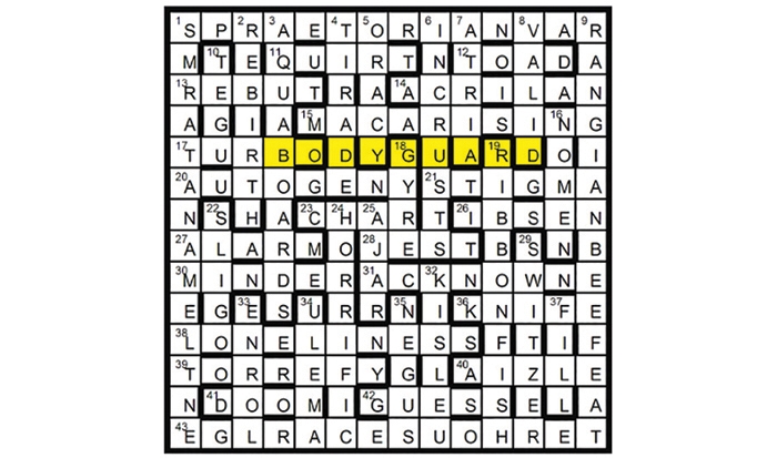 Five perimeter entries, and 29 and 30, are types of BODYGUARD.
