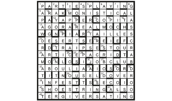 The future is not for parties ‘playing politics’ (16 29 1A 15) is a quotation by Woodrow Wilson. 1A provides a cryptic indication of 5, 13, 23 and 28.