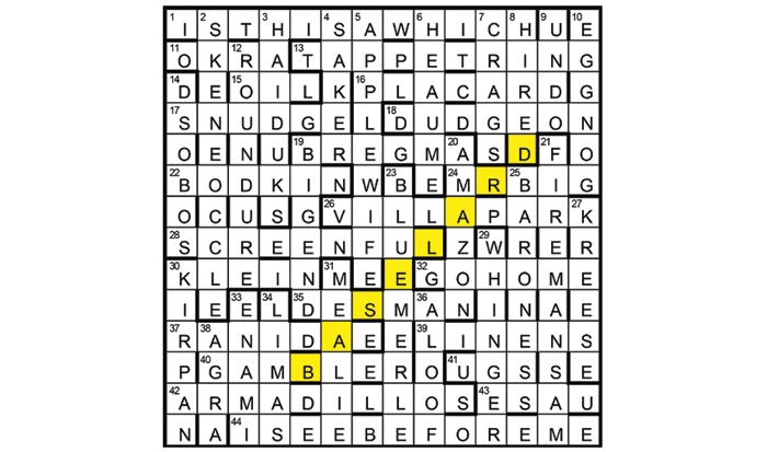 The quotation was ‘IS THIS A [DAGGER] WHICH I SEE BEFORE ME’ (1/44) (Macbeth).18, 22, 2, 27, 29 and 30D are daggers. BASELARD (diagonally from the 12th row) was to be shaded. VILE STUFF suggests BASE LARD.
