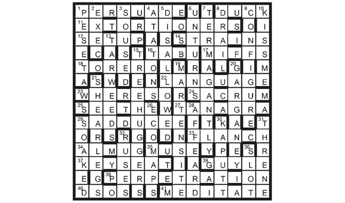 To create entries at 5, 9, 20, 29D and 41, answers to clues in italics become TREE-HUGGERS (15), embracing sallow, fig, argan, oak and dita. Definitions of the entries are 16, 12, 8A, 3 and 35.