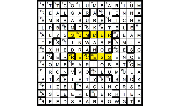 21 and 41 are definitions of SUMMER; RECESS defines each of the other unclued lights.