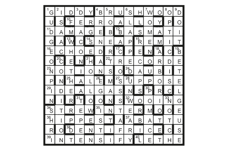 The key word is DENTIFRICE (38), which can be divided into DENT defining 11, 21, 33; IF 13, 20, 27; and RICE 4A, 12, 18.