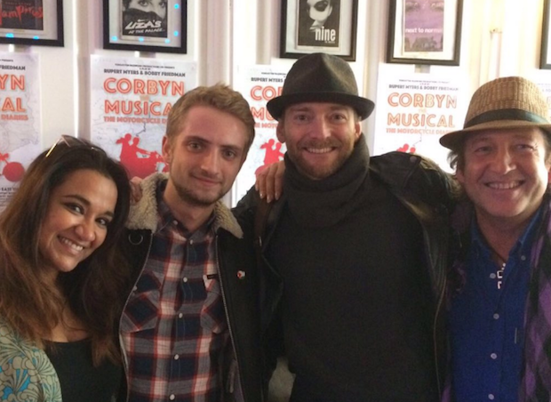 Despite much media interest, Corbyn is yet to attend the show. However, Mr S can disclose that one member of the Corbyn family has managed to see the funny side. Corbyn’s youngest son Tommy recently attended a performance of the musical satire, where he mingled with the cast after the show: