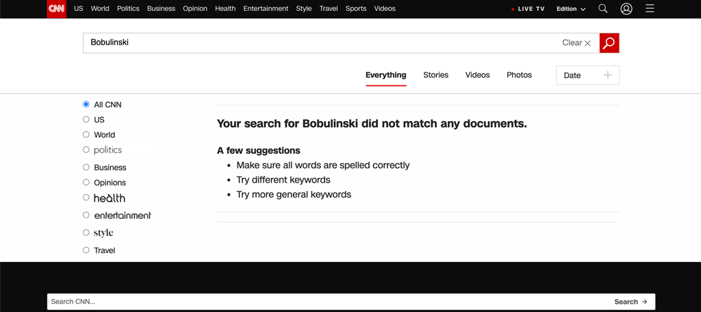 Most of the press, being wholly owned subsidiaries of the Democratic National Committee, violently disparaged his revelations where they did not studiously ignore them. As of early this morning, a search for ‘Bobulinski’ on the CNN site produced a search-not-found result. How odd!