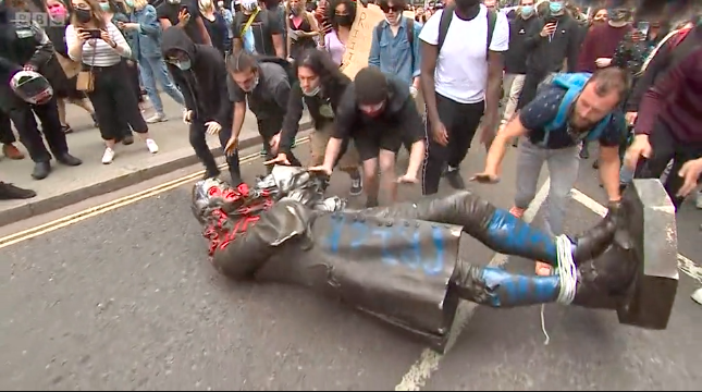 It was the glee with which they tore down Colston’s statue that was most unnerving. They yanked him down and started cheering and screaming as they stomped on his head. He was then taken to the nearby harbour and thrown in the Avon river. Another rousing cheer.