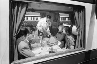 Even in the heyday of onboard restaurants, only the smarter expresses offered a full menu. The 4:50 from Paddington, which stars in one of Agatha Christie’s stories, “was not much patronized, the first-class clientele preferring either the faster morning express, or the 6:40 with dining-car.” But as late as the 1980s, proper onboard meals were still common on British Rail. There were protests when kippers were removed from the breakfast menu. Privatization brought a brief resurgence of glamour. On the east coast line from King’s Cross one operator, GNER, offered a proper restaurant on almost every train. But cutbacks began in 2006 and by 2011 they were all gone, replaced by free food and drink in first class, served at your seat, sufficient but dull.