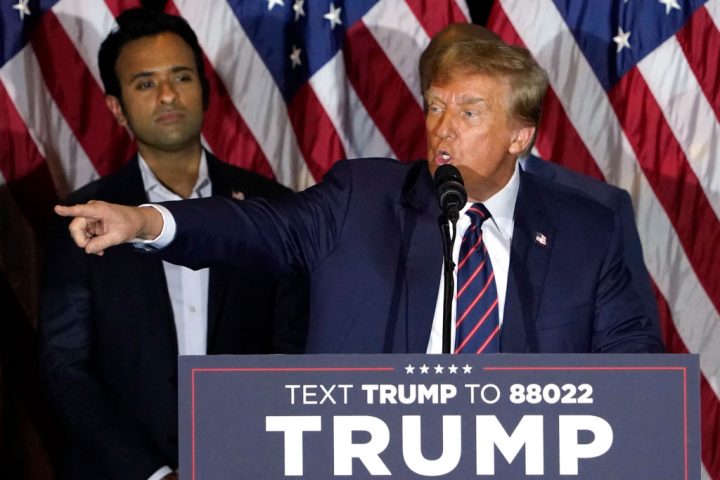 ‘Very nice, wasn’t that nice?’ said Trump after Vivek finished. Just over a week ago, he called Ramaswamy, then still a presidential candidate, ‘sly’ and ‘deceitful’ – but then Ramaswamy dropped out and endorsed him, so all is forgiven.