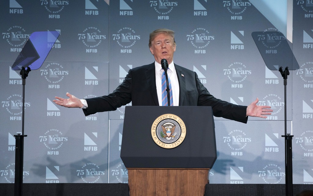WASHINGTON, DC – JUNE 19: (AFP OUT) U.S. President Donald Trump addresses the National Federation of Independent Businesses 75th Anniversary Celebration on June 19, 2018 in Washington, DC. (Photo by Chris Kleponis – Pool/Getty Images)