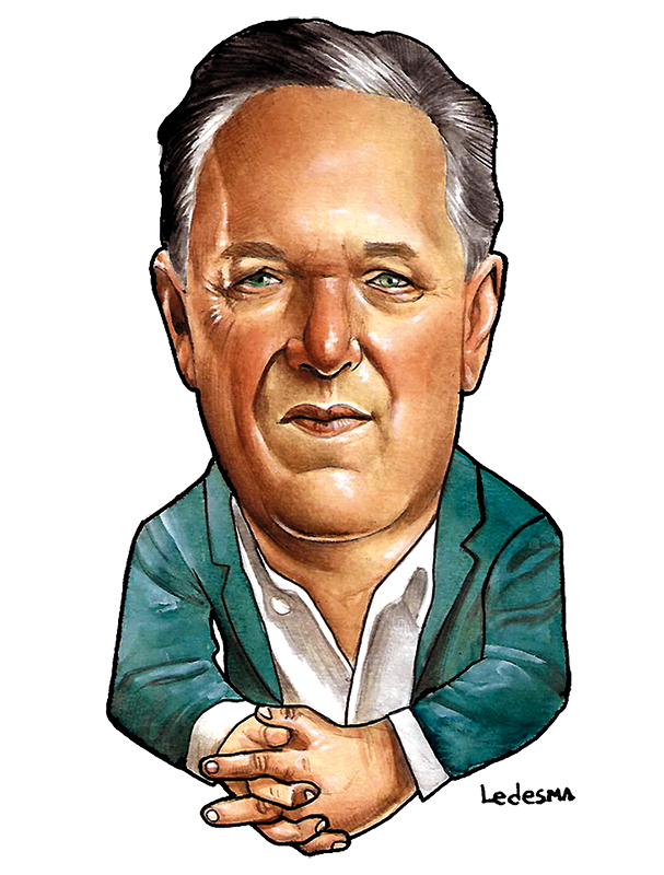 On the subject of Johnson, he’s pretty damning: ‘Beneath the buffoon exterior may lie an actual buffoon.’ And he doesn’t stop there: ‘Until he learns to comb his hair, I’m not interested.’ What does he reckon about the current Tory leader? ‘Reports of her political death may have been exaggerated.’