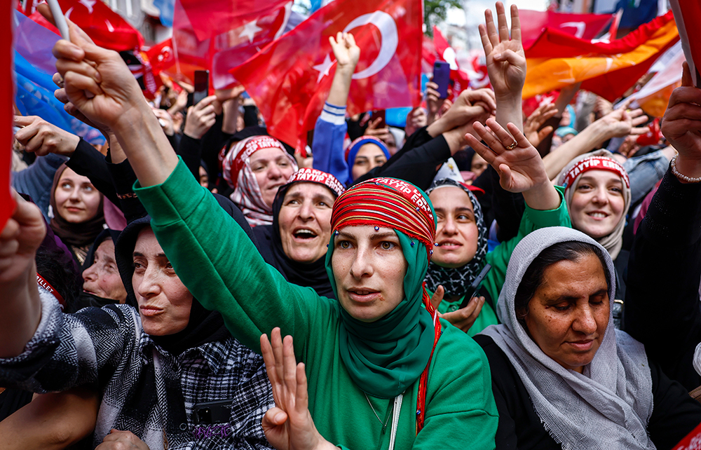 On Sunday, the day of the vote, the turnout was close to 90 per cent, but it’s a mistake to call the elections free and fair. The Turkish media is heavily controlled, the monopoly of power is absolute. Erdogan appeared on 27 TV channels in the days before the election, while the opposition could only make their voices heard on limited platforms. Even Hagia Sophia, which should have remained a secular space to honour its long and diverse history as church, mosque and museum, was used for political rallying. On the evening before election day, Erdogan led a prayer inside the mosque – a ritual performed by Ottoman sultans before they would lead their armies to war.