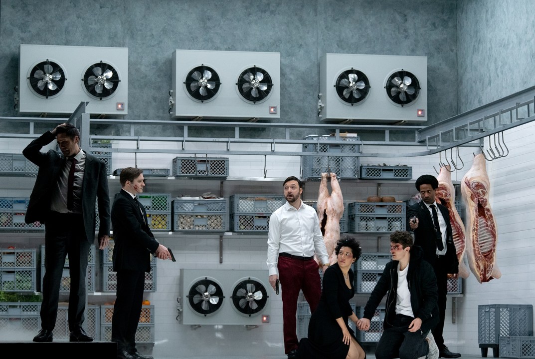 Well, we can’t be having that — this is 2022, after all. Katie Mitchell’s impressive new staging takes those certainties and blurs and inverts them, tweaking plot and characterisation to convert an 18th-century hagiography into the equivalent of one of those moody, well-reviewed TV thrillers, complete with morally ambivalent anti-heroine, bleak urban settings, and the rumbling threat of telegenic ultraviolence. The setting, realised in exquisite detail in Chloe Lamford’s sets, is the embassy of some unspecified (but clearly authoritarian) modern state. The tyrant Valens (Gyula Orendt) hosts receptions in a stuffy-looking conference room; meanwhile in the kitchens his staff of Christian insurgents is concealing firearms in the fish kettles. The set slides left and right; we see dingy service corridors, a brothel and a cold store.