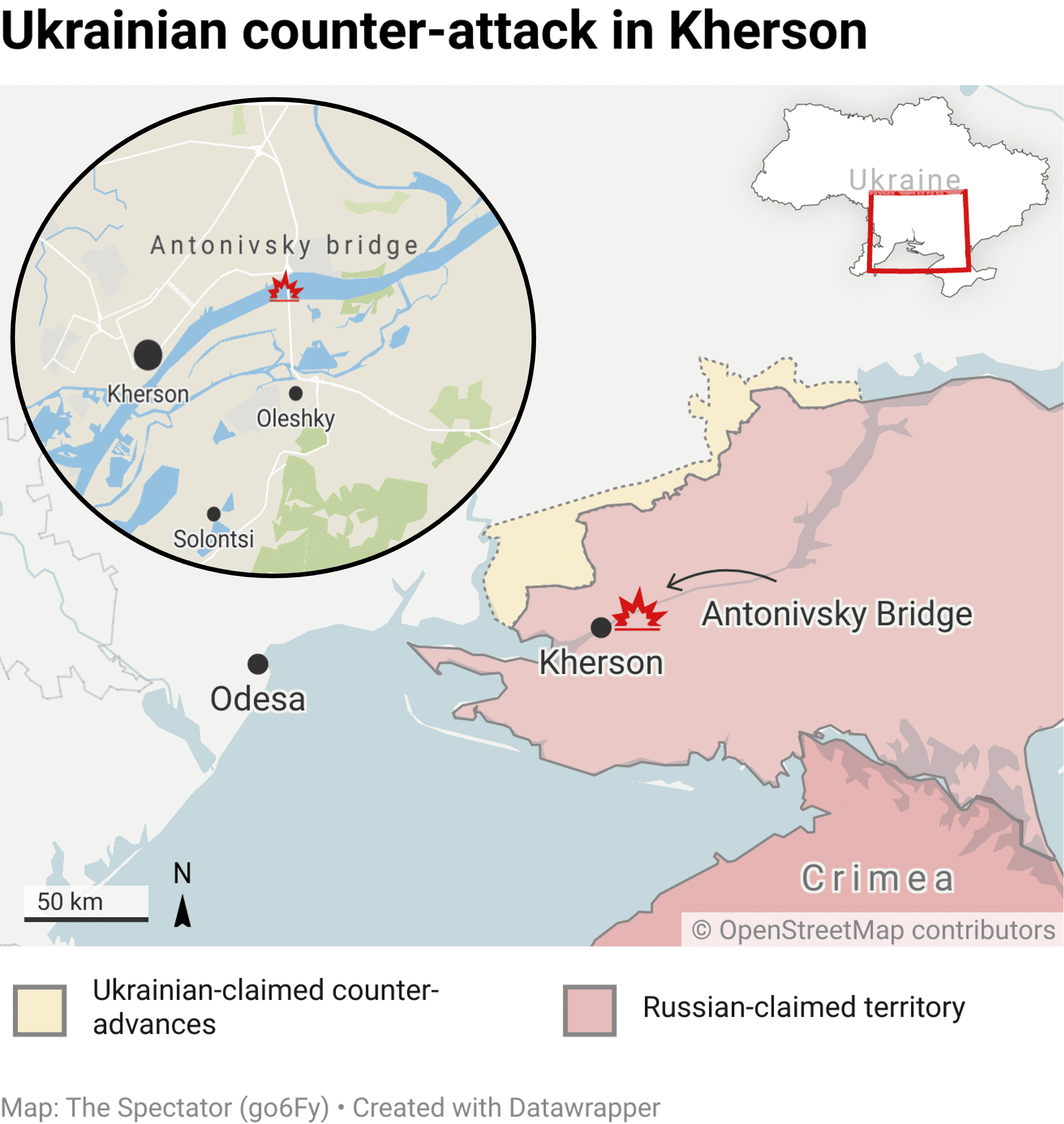 For weeks now, Ukraine’s army has been seeking to destroy the bridges linking Kherson region to the rest of Russian troops. Ukraine would shell, then the Russians then seek to rebuild. But now, only crosswalks remain. This means the Russian army on the west of Kherson is cut off from the supply of weapons and personnel from Crimea.