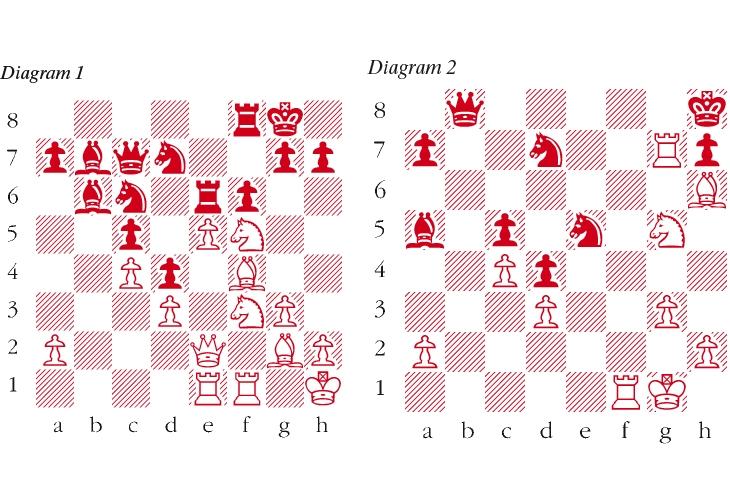 1 e4 e6 2 d3 b5 3 Nf3 Bb7 4 g3 Nf6 5 Bg2 Bc5 This is hard to justify, since the king’s bishop is normally needed on the kingside for defensive purposes. 6 0-0 0-0 7 Nbd2 d6 8 Qe2 Bb6 9 Kh1 c5 10 Nh4 Nc6 11 c3 d5 12 e5 Nd7 13 f4 b4 14 Ndf3 White’s kingside attack proceeds unopposed, largely due to the absence of the useful defensive king’s bishop. 14 … Qc7 15 f5 exf5 16 Bf4 Rae8 17 Rae1 bxc3 18 bxc3 d4 19 c4 19 e6, winning material, is objectively better. 19 … Re6 A mistake. Black should reorganise with 19 … Qc8 20 Nxf5 Bc7 with complex play. 20 Nxf5 f6 (see diagram 1) Threatening to destroy White’s strong point at e5, but the scheme is over-optimistic and allows the energy in White’s position to burst forth by means of a positional queen sacrifice. 21 Nxg7 This is good but White has another, remarkable sacrificial line, e.g. 21 Bh6 gxh6 22 N3xd4 Nxd4 23 Qg4+ Kf7 24 Qg7+ Ke8 25 Nd6+ Kd8 26 Nxb7+ Ke8 27 Nd6+ Kd8 28 Bd5 with a very strong attack. 21 … Kxg7 22 exf6+ Rfxf6 23 Qxe6 Rxe6 24 Rxe6 White avoids 24 Bxc7? with only rook for two minor pieces. White has now given up queen and knight for two rooks, but Black’s famous king’s bishop is locked out of play, while his other pieces cannot participate in the defence of his king. 24 … Qc8 25 Bh6+ Kg8 26 Ng5 Nce5 27 Bxb7 Qxb7+ Although Black gains a temporary respite with this check his queen must immediately return to the back rank to prevent Re8+. 28 Kg1 Qb8 29 Re7 Ba5 30 Rg7+ Kh8 (see diagram 2) 31 Nf7+ Good enough but 31 Rff7 was completely overwhelming, e.g. 31 … Nf8 32 Rxf8+ Qxf8 33 Rxh7+ Kg8 34 Bxf8. 31 … Nxf7 32 Rgxf7 Bd2 33 Bxd2 Qd6 34 Rxd7 Black resigns