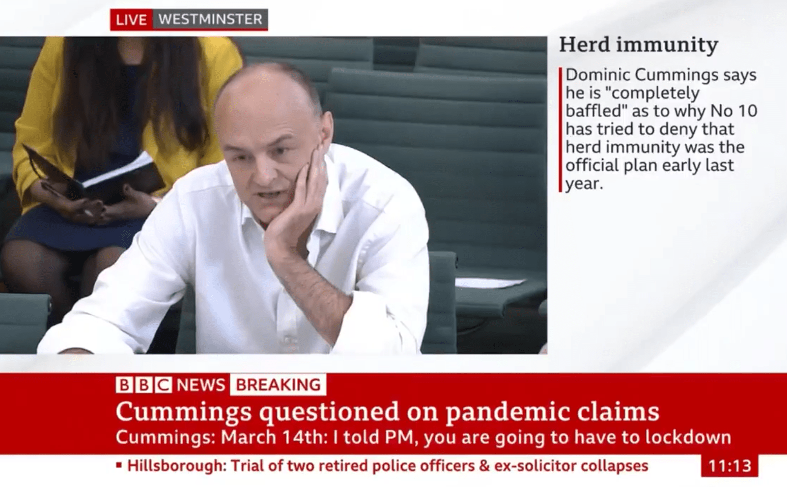 He told the committee he spoke to Kuenssberg once every three or four weeks and used one example from March 2020 when pictures were circulated of tanks near London which sparked rumours that the capital was about to go into lockdown. He said he told Kuenssberg it was not going to happen which meant the BBC did not report it as a story.