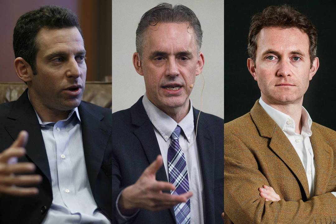 Since Sam is a prominent atheist and Jordan is not, all four events were to some extent pitched as a battle between them about God. Philosophically, and on these occasions literally, I sit between the two of them. But my job was not so much to moderate as to help guide, and chip in where I liked.