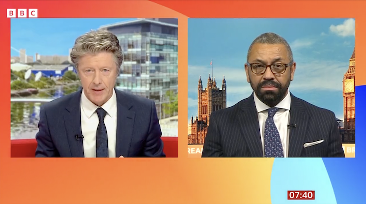 As luck would have it, Cleverly was on the morning broadcast round this morning. On BBC Breakfast he was quizzed on the comment by the presenter, Charlie Stayt.