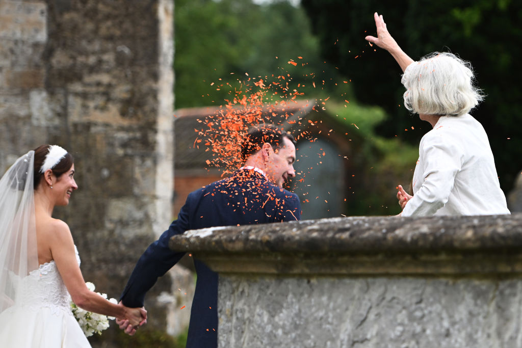 George Osborne’s happy day hasn’t gone as smoothly as the ex-Chancellor would have liked. First, he had to call in police to investigate alleged online harassment after a so-called ‘poison pen’ email was sent to guests of his wedding. And then, following the ceremony itself, a protestor decided to cover the groom in orange confetti along with his new bride Thea Rogers.