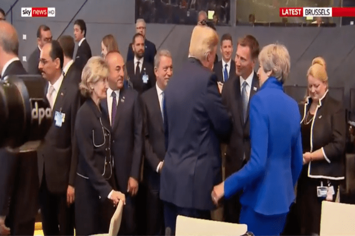 When Theresa May first met Donald Trump, she was pictured strolling arm-in-arm with the president through the grounds of the White House. But a lot has happened in the 18 months since that meeting, and now it seems May doesn’t even want to touch the Donald’s hand. When Trump greeted the Prime Minister at the Nato summit in Brussels, May refused to shake the president’s hand. Perhaps Trump’s overtures to Boris Johnson haven’t gone down well…